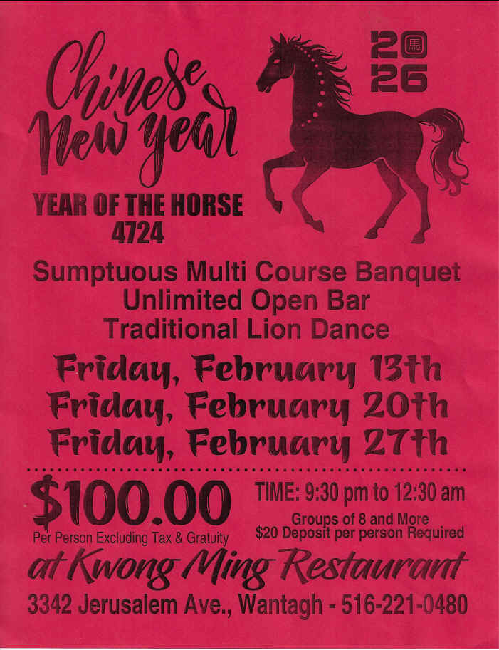 Chinese New Year’s Party Dates Available Please call to make reservations